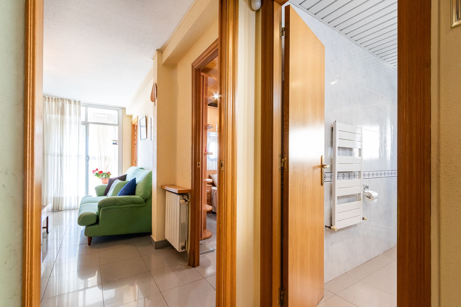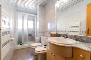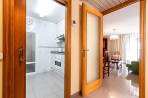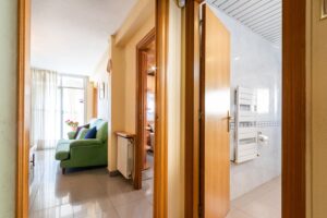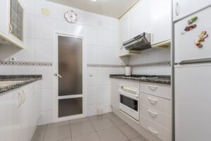 Este magnífico piso con orientación Sur, de 102m² construidos (92m² útiles) ha sido completamente reformado. Dispone de tres habitaciones, dos de ellas dobles y una individual, con mucha luz natural. El baño es completo y cuenta con un plato de ducha cómodo. La cocina es independiente y tiene acceso a un pequeño lavadero con espacio para aprovecharlo al máximo. El salón-comedor es espacioso y luminoso, con salida a un balcón tapado de aluminio. Los suelos son de gres, las carpinterías de aluminio y madera, y la calefacción es a gas natural. La finca tiene dos ascensores
